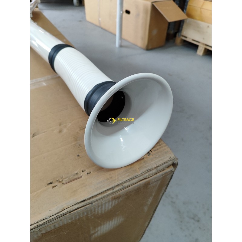 Průměr 75 mm; délka 1,5 m; bílá barva; kruhová odsávací hubice Ø 150mm.