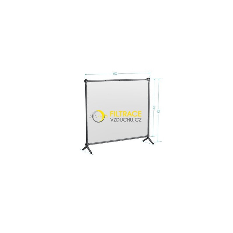 Výplň zástěny je z pružného PVC závěsu o tloušťce 1 mm.