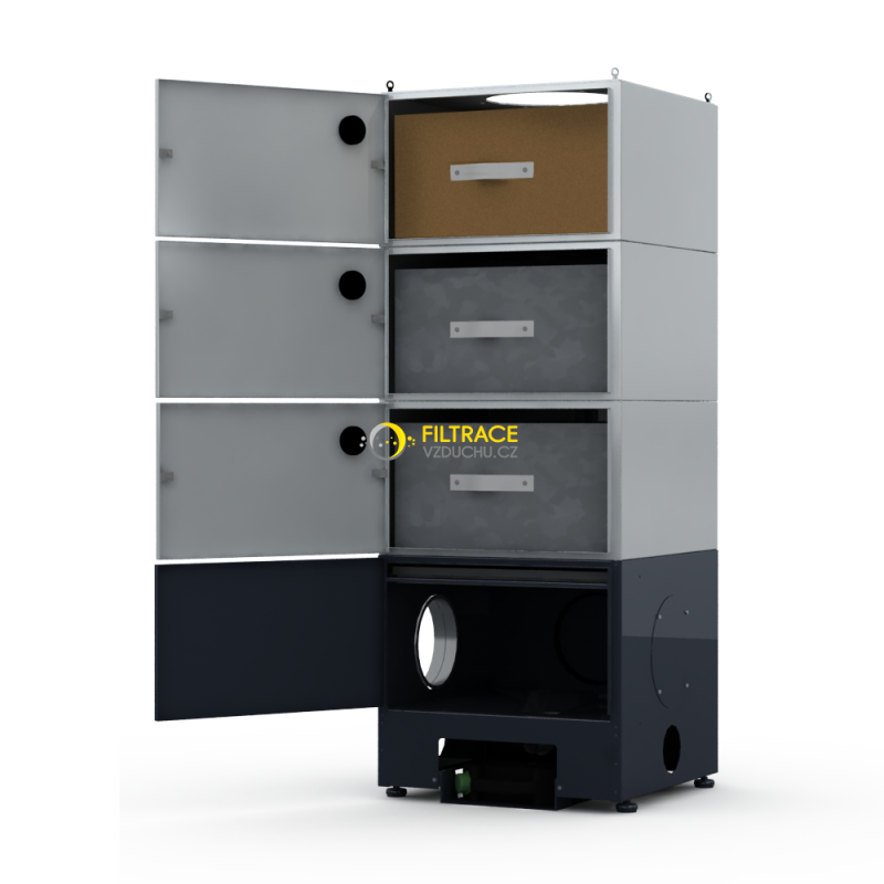 Díky této speciální konstrukci je vytvořeno rovnoměrné proudění vzduchu, které umožňuje rozložení zatížení po celém povrchu filtru.