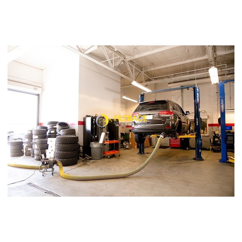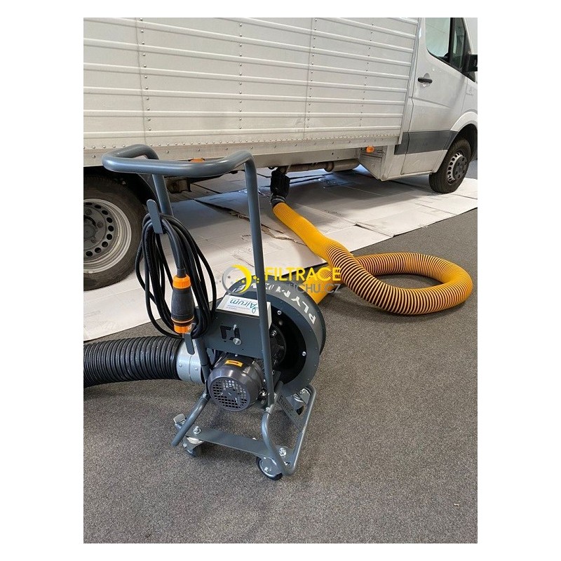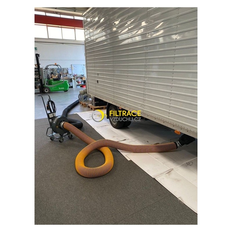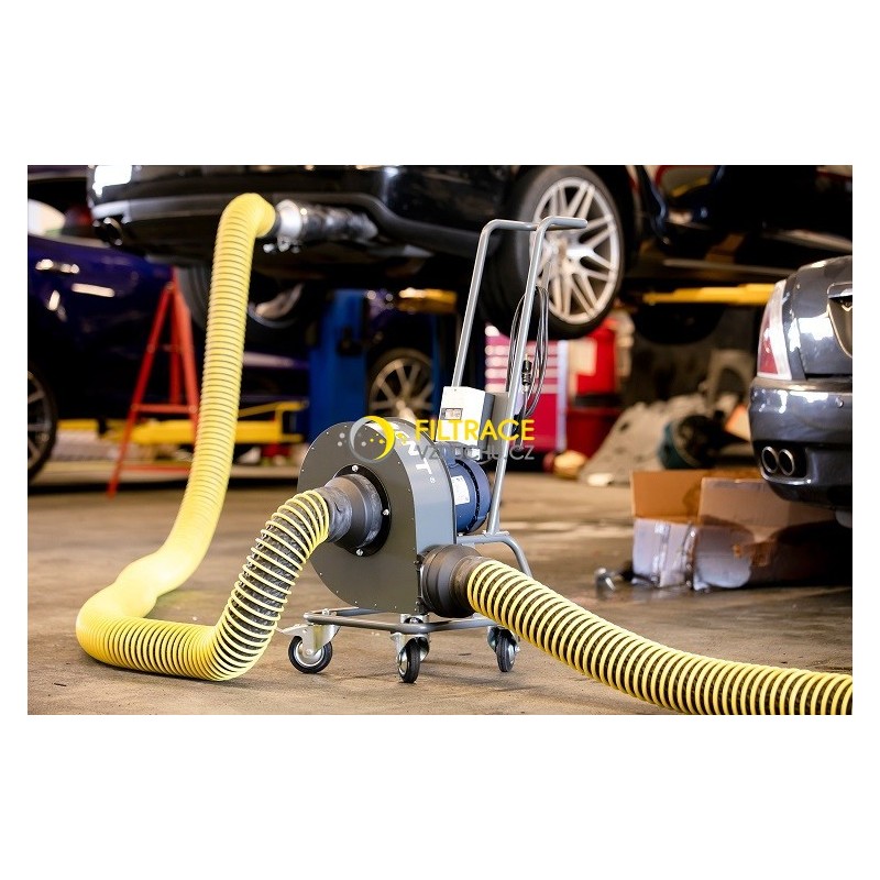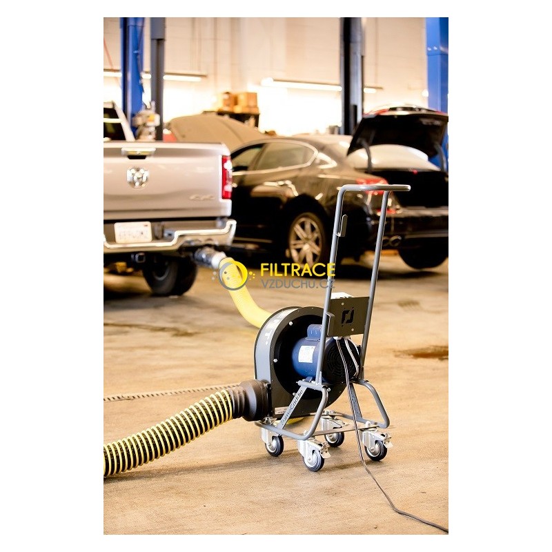 FummeCaddie je mobilní odsávací zařízení přímo připojené k výfuku automobilu pomocí odsávací hubice.